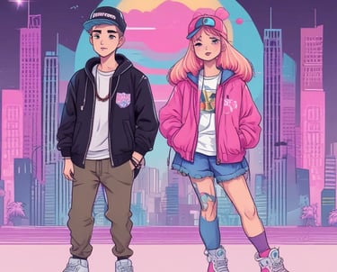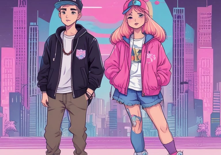 Pastel accents meet bold streetwear style.
